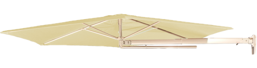 De Prostor P4 is een muurparasol met een modern design. De muurparasol is heel gebruiksvriendelijk, dankzij de geïntegreerde gasveer. Men hoeft geen extra kracht te gebruiken bij het uitklappen van muurparasol P4. De arm kan horizontaal vergrendeld worden wanneer de parasol open is en wanneer de arm op tussenhoogte hangt, kan de parasol eenvoudig opengevouwen worden of in of uit de arm genomen worden. In de verticale positie zijn zowel de arm als de parasol netjes opgevouwen. Kortom: de Prostor P4 is de ideale muurparasol mét telescopische arm.