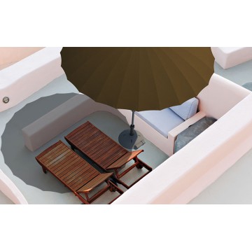 De Vaticano is een mooie designparasol die te openen is d.m.v. een opdraaimechaniek met zwengel. Hij is handzaam en fijn te bedienen. De 24 flexibele baleinden houden het kleurvaste parasoldoek lekker strak gespannen. Omdat de Vaticano parasol 45° knikbaar en kantelbaar is maakt hij altijd schaduw. Genieten van de stralende zon tot deze bijna onder gaat. Deze designparasol is vernoemd naar de koepel in Vaticaanstad. Dit omdat hij weinig ruimte in beslag neemt, maar veel indruk maakt bij uw gasten. Zoals vanzelfsprekend wordt ook deze parasol geleverd met een kleurvast parasoldoek dat vele jaren meegaat en de Vaticano in volle glorie laat stralen.