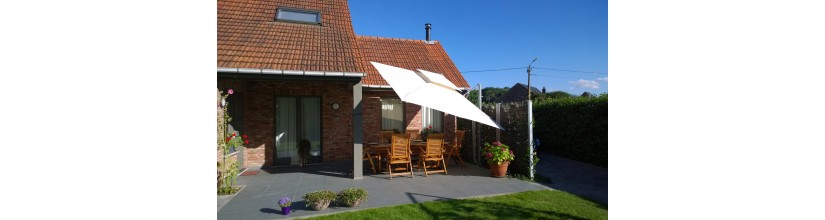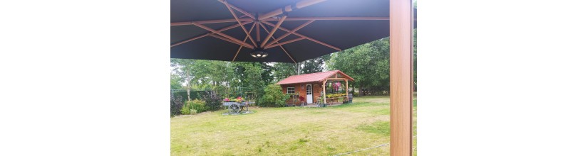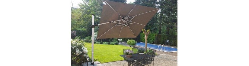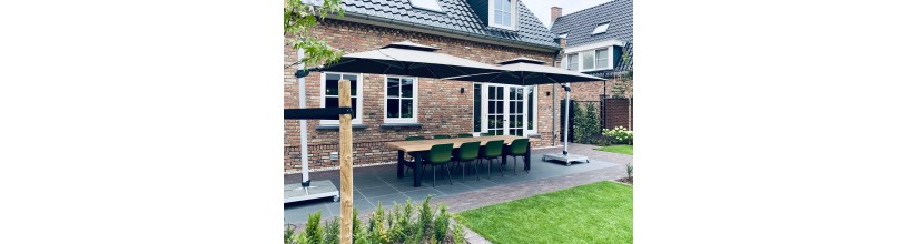 Om de juiste parasol samen te stellen vragen wij u naar de showtuin te komen. In de showtuin kunnen we alle mogelijkheden laten zien wat deze parasols te bieden hebben.