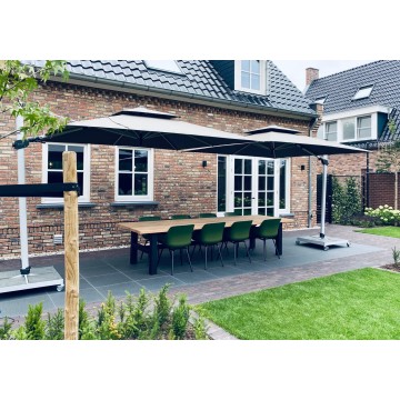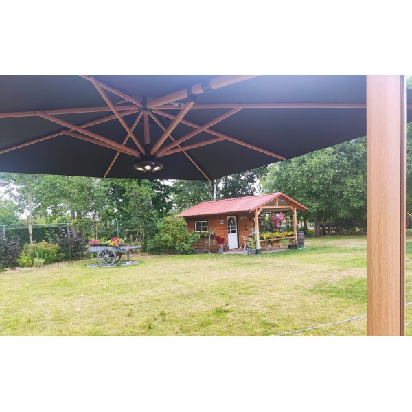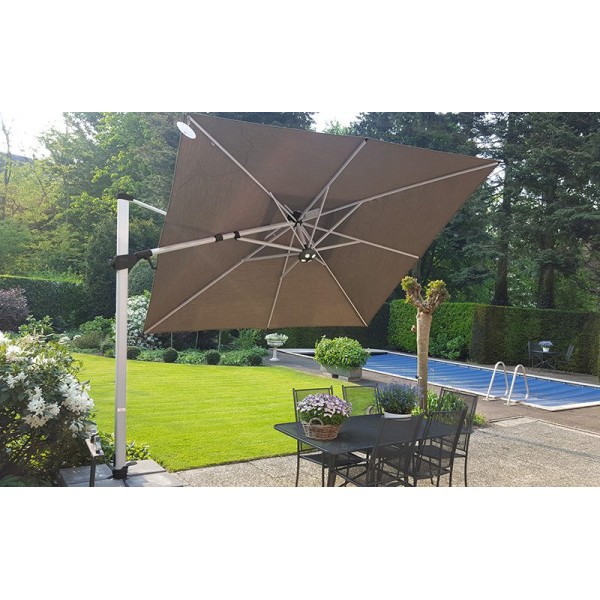 Als extra wordt deze zweefparasol voorzien van gratis accuverlichting en een parasol hoes.