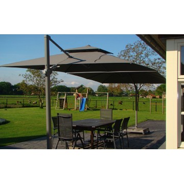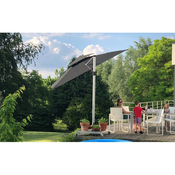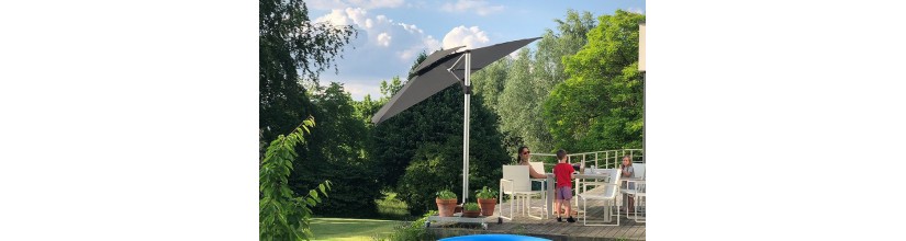 De bijzondere Fratello Pro zweefparasol met een prachtig Italiaans design. Dit is de meest verkochte vrijhangende parasol. Doordat u de Fratello 360° kunt draaien en daarnaast ook achterwaarts als zijwaarts 45° te kantelen, heeft de Fratello heel veel mogelijkheden op uw terras. De Solero Fratello Pro parasols zijn praktische en mooie zweefparasols die het mogelijk maken om maximaal schaduw te creëren. De parasol kan geplaatst worden in een demontabel grondanker of u maakt er een verrijdbare parasol van. Zie de opties.