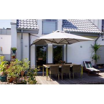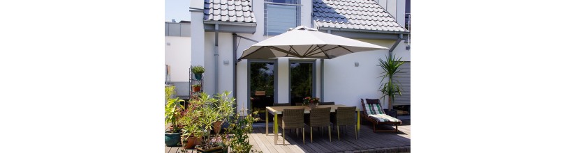 Een Prostor P7 muurparasol wordt gebruikt indien u de parasol wilt laten zwenken, in tegenstelling tot een vaste opstelling zoals dat gaat bij de Prostor P6 serie.