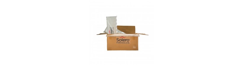 2 bouten iets losdraaien en de parasol kan zo uit de houder geschoven worden.